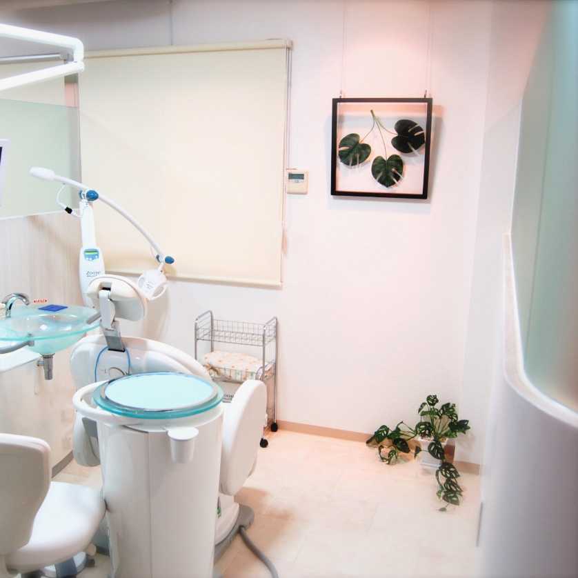 診療室はキュア(治療)ゾーンとケアゾーンに分かれており、キュアゾーンでは虫歯治療をメインに行います。キュアゾーンは南欧のイメージで白とオレンジを基調に、明るく和やかなイメージでお子様からお年寄りまで安心して治療を受けて頂けるように配慮しています。プライバシーを配慮して、パーテーションを設置していますが、移動式ですので、お子様と御家族の隣同士の処置でも同時に安心して受けられます。